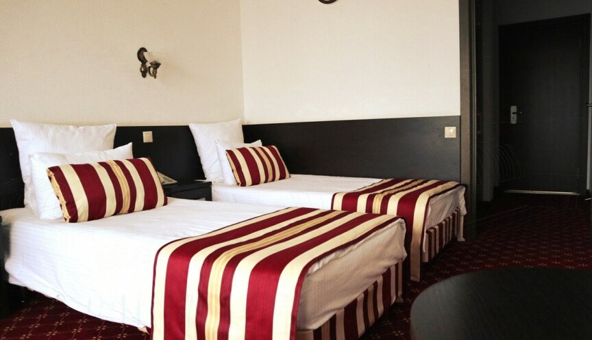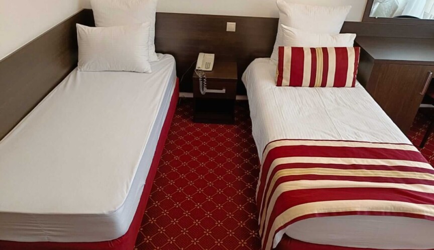 - С двумя односпальными кроватями: В номере 2 кровати по 90 см.