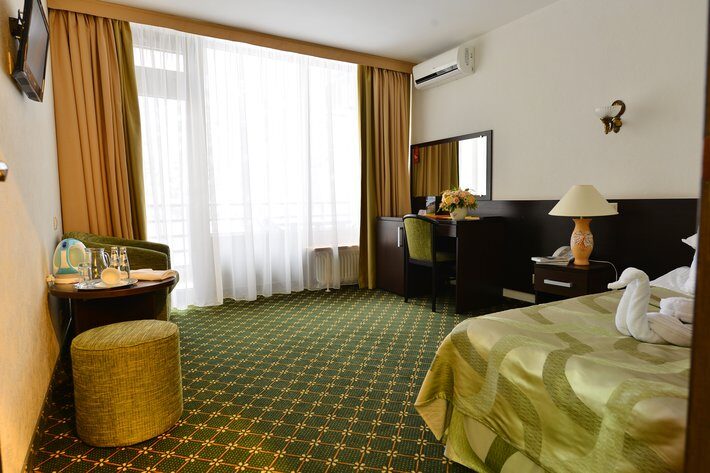 - С одной двуспальной кроватью. В номере 1 кровать- 160 см.