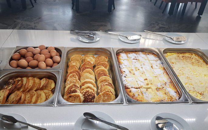 Питание предоставляется по системе шведский стол, в соответствии с расписанием: